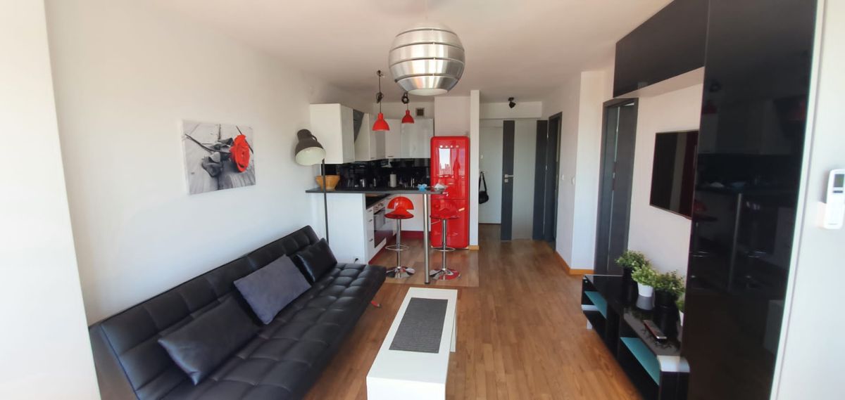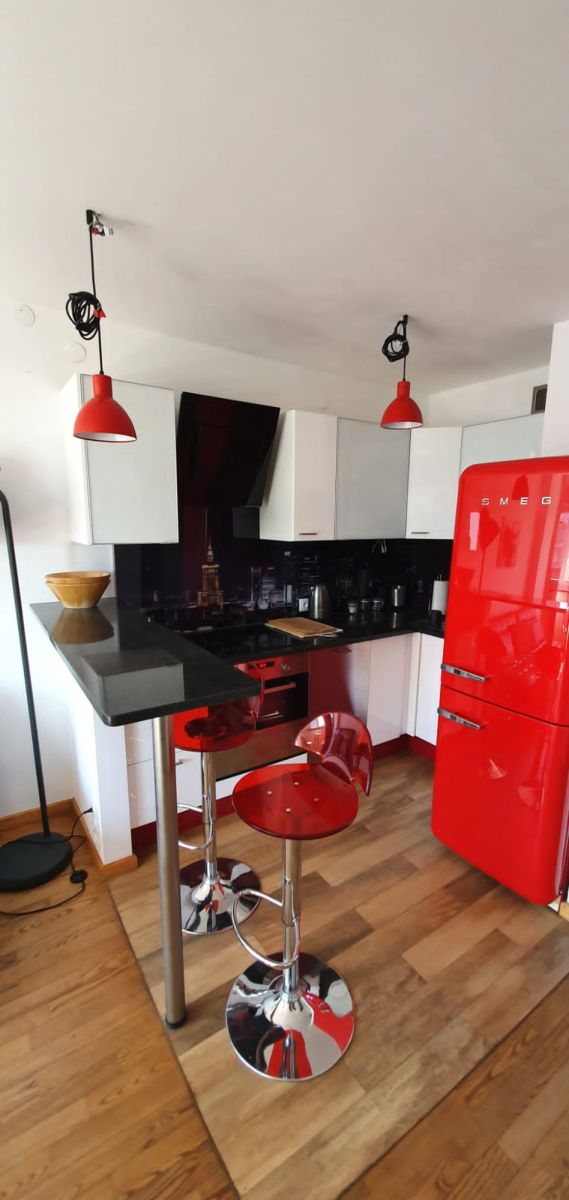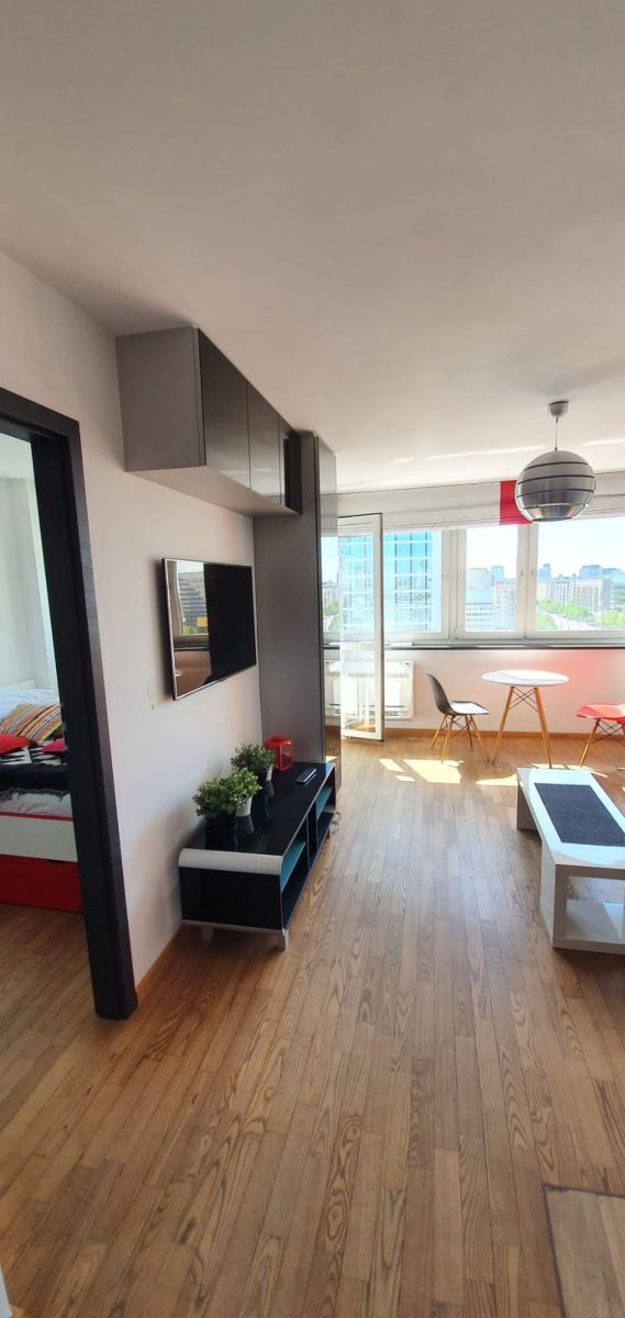 Mieszkanie jest w pełni wyposażone we wszystkie niezbędne sprzęty RTV i AGD oraz posiada klimatyzację, dodatkowo z okien roztacza się widok na panoramę Warszawy, jednocześnie w lokalu jest dosyć cicho gdyż nie znajduję się przy samej ulicy.